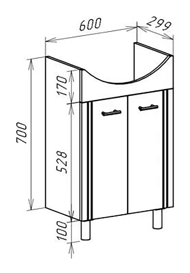 Тумба под раковину Bellezza Уют 60 дополнит интерьер ванной комнаты. Модель оснащена 2 дверцами и ножками, защищающими конструкцию в случае намокания пола. Корпус выполнен из ЛДСП, фасад - из МДФ. Изделие покрыто глянцевой эмалью для защиты поверхности от внешних воздействий. Тумба используется вместе с раковиной Rosa Уют 60. Дополнительные характеристики: