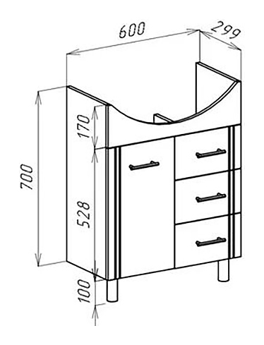 Тумба под раковину Bellezza Уют 60 дополнит интерьер ванной комнаты. Модель оснащена дверцей, 3 ящиками в боковой части и ножками, защищающими конструкцию в случае намокания пола. Корпус выполнен из ЛДСП, фасад - из МДФ. Изделие покрыто глянцевой эмалью для защиты поверхности от внешних воздействий. Тумба используется вместе с раковиной Rosa Уют 60. Дополнительные характеристики: