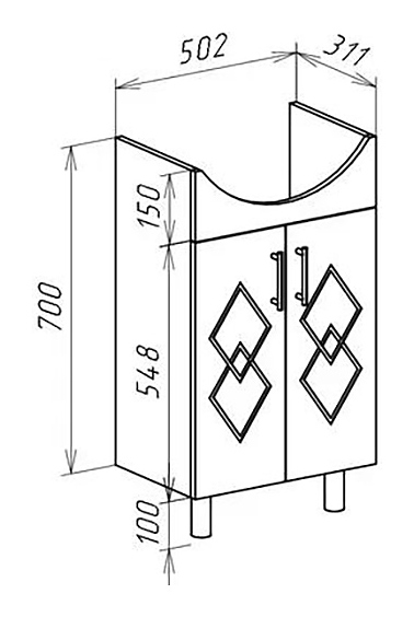 Тумба под раковину Bellezza Элеганс 55 дополнит интерьер ванной комнаты. Модель оснащена 2 дверцами и ножками, защищающими конструкцию в случае намокания пола. Корпус выполнен из ЛДСП, фасад - из МДФ. Изделие покрыто глянцевой эмалью для защиты поверхности от внешних воздействий. Тумба используется вместе с раковиной Rosa Элеганс 55. Дополнительные характеристики: