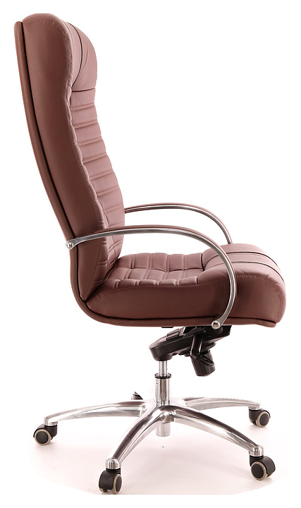 Офисное кресло руководителя Everprof Atlant Al M используется в офисах и квартирах. Модель оснащена поясничной поддержкой, подлокотниками из полированного алюминия и колесами - роликами. Каркас кресла монолитный, крестовина изготовлена из полированного алюминия, обивка - из экокожи, набивка - вспененный полиуретан плотностью 22-25 кг/м³, ролики - из нейлона. Особенности:
