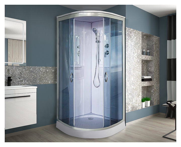 Душевая кабина Niagara NG-116-15Т предназначена для использования в ванных комнатах. Благодаря угловой конструкции и поддону в форме четверти круга модель можно вписать даже в ванные комнаты небольшой площади. Кабина оснащена 2-х секционными раздвижными дверями и крышей. В комплект поставки входят зеркало, полочка, стойка для душа, шланг, ручной душ. Особенности: