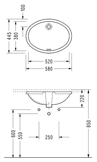 Раковина врезная под столешницу SEREL 0501 52х44,5х22 см, фарфор, белая