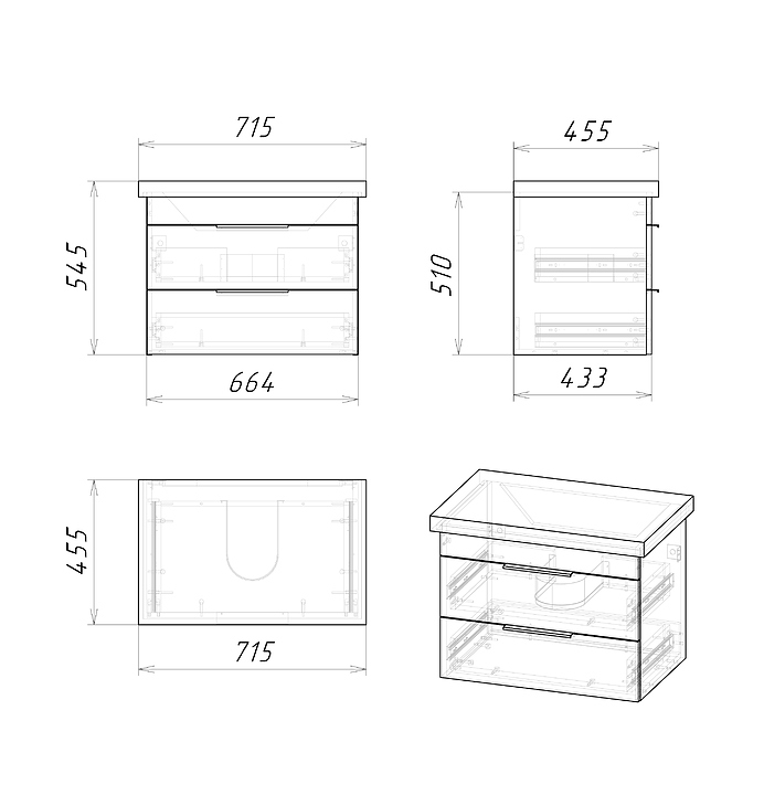 Тумба под раковину Grossman ФОРТА 70 дополнит интерьер ванной комнаты. Благодаря подвесной конструкции модель не занимает много места, что экономит пространство в ванной комнате и облегчает уборку. Тумба оснащена 2 выдвижными ящиками с системой плавного закрывания. Изделие выполнено из влагостойкой ЛДСП, которая отличается устойчивостью к перепадам температур и высокой влажности. Тумба используется вместе с раковиной KIROVIT Фостер 70. В комплект поставки входят ручки и подвесы для крепления. Особенности: