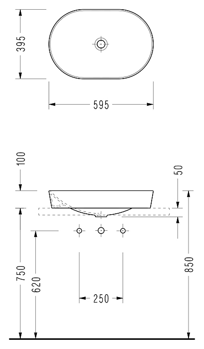 Раковина врезная на столешницу SEREL SAPPHIRE SP46 59,5х39,5х15 см, фарфор, белая