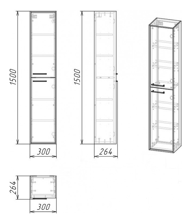 Шкаф-пенал Grossman РЕАЛ 30 дополнит интерьер ванной комнаты. Благодаря подвесной конструкции модель не занимает много места, что позволяет экономить пространство, а также облегчает уборку. Шкаф-пенал оснащен 2 распашными дверцами с плавным закрыванием. Корпус выполнен из влагостойкой ЛДСП, фасад - из МДФ в матовой пленке, которая отличается устойчивостью к повышенной влажности и простотой в уходе. В комплект поставки входят ручки и подвесы для крепления. Дополнительные характеристики: