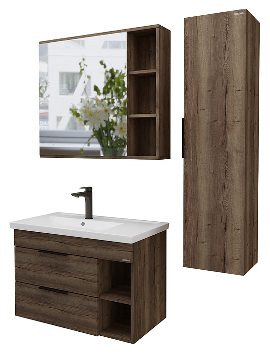 Шкаф зеркальный Grossman ФОРТА 80 темный дуб галифакс