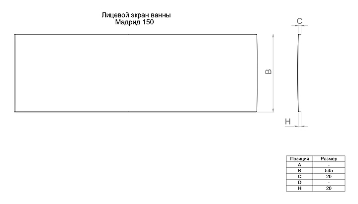 Фронтальная панель 1ACReal Мадрид 150 предназначена для установки с ваннами Мадрид 150. Изделие выполнено из акрила. Особенности: