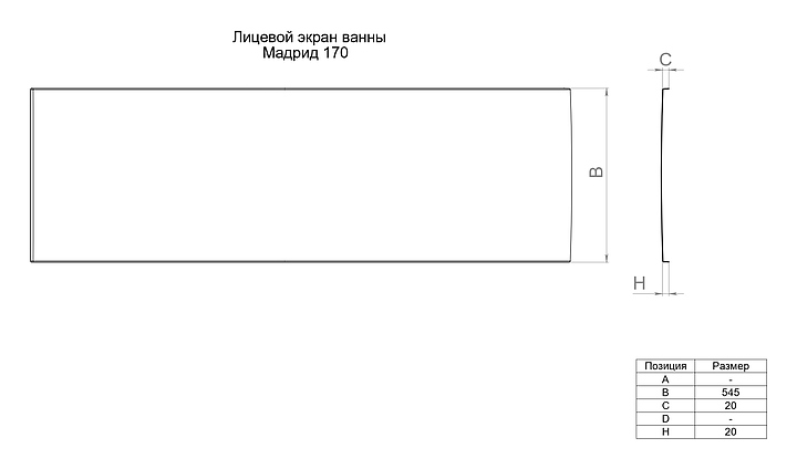 Фронтальная панель 1ACReal Мадрид 170 предназначена для установки с ваннами Мадрид 170. Изделие выполнено из акрила. Особенности: