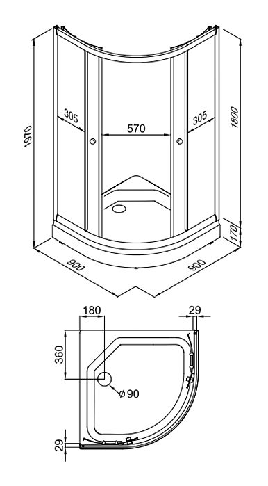 Душевой уголок Triton Хром 90х90 А предназначен для использования в ванных комнатах. Благодаря угловой конструкции и поддону в форме четверти круга модель можно вписать даже в ванные комнаты небольшой площади. Кабина оснащена 2-х секционными раздвижными дверцами, а поддон с антискользящим покрытием для безопасности. Профиль выполнен из алюминия, который устойчив к окислению и появлению коррозии, обеспечивает герметичность и легкость конструкции. Поддон выполнен из акрила, устойчивого к механическим повреждениям, обладающего небольшим весом и повышенной шумоизоляцией. Комплектация: