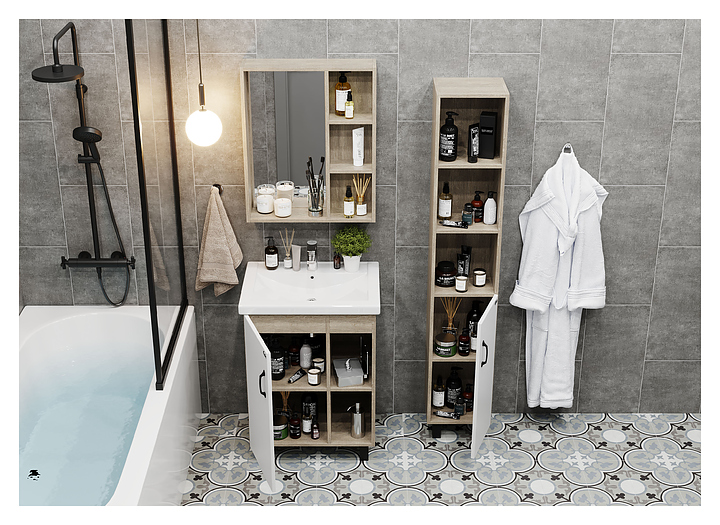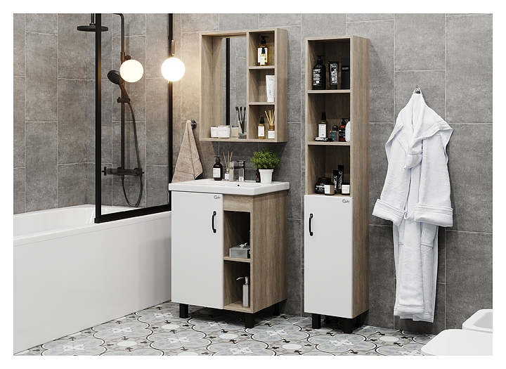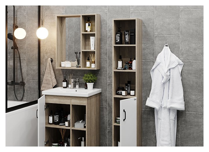 Тумба под раковину Onika ТИМБЕР 60.01 белая матовая, дуб сонома