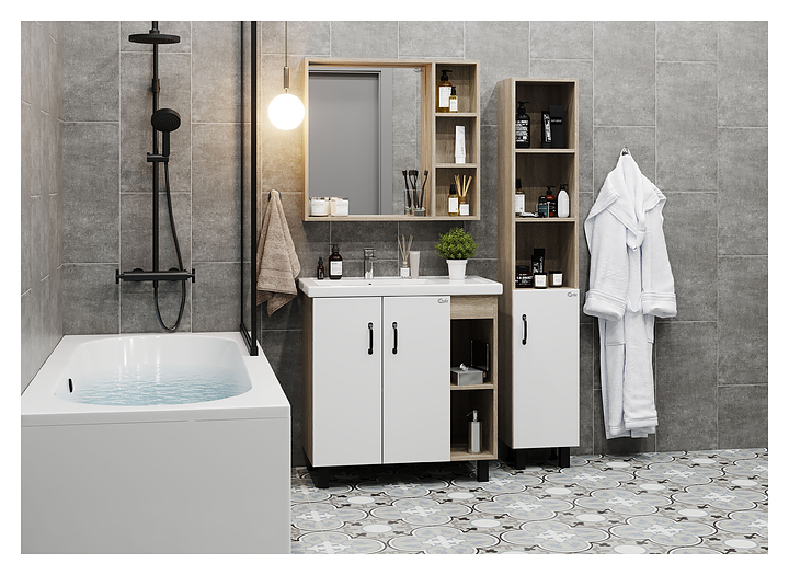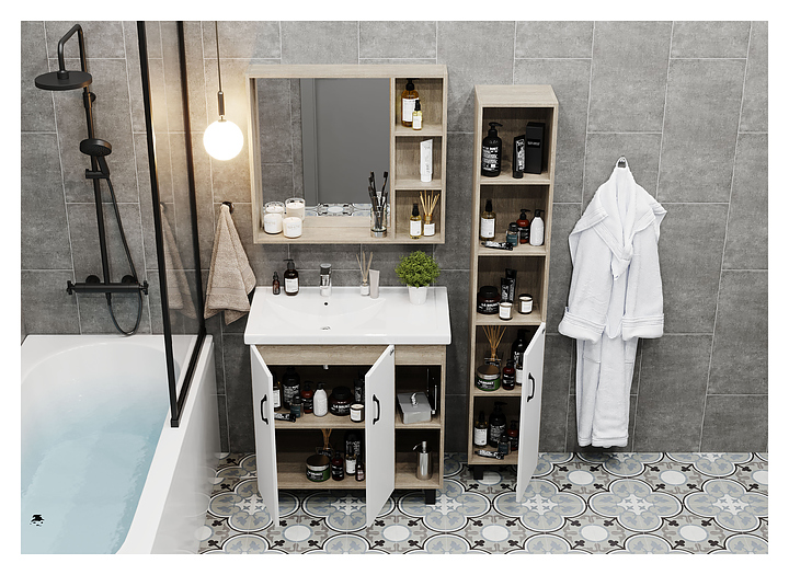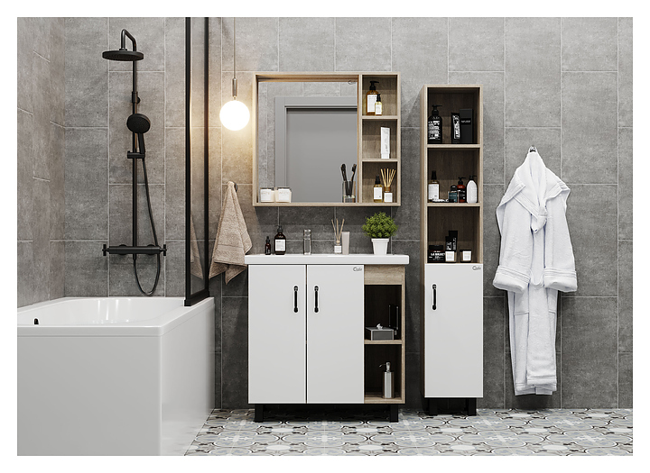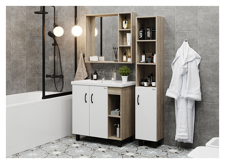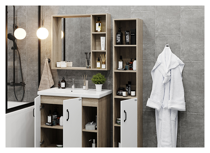 Тумба под раковину Onika ТИМБЕР 80.10 белая матовая, дуб сонома