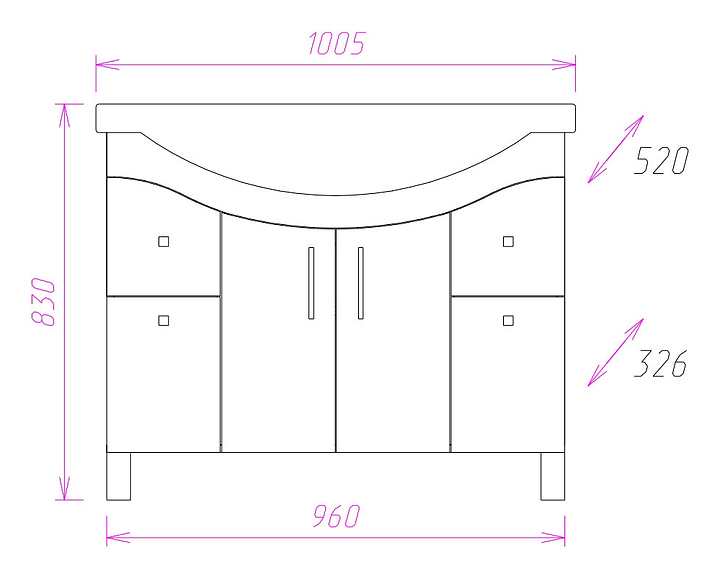 Тумба под раковину Onika ЭЛЬБРУС 100.13 дополнит интерьер ванной комнаты. Модель оснащена 4 распашными дверцами, 2 выдвижными ящиками и ножками, защищающими конструкцию в случае намокания пола. Корпус выполнен из ЛДСП, фасад - из МДФ в пленке, устойчивой к механическим воздействиям, перепадам температур и высокой влажности. Тумба используется вместе с раковиной Santek Эльбрус 100. В комплект поставки входят 6 ручек, 2 декоративные хромированные и 3 пластиковые ножки. Особенности:
