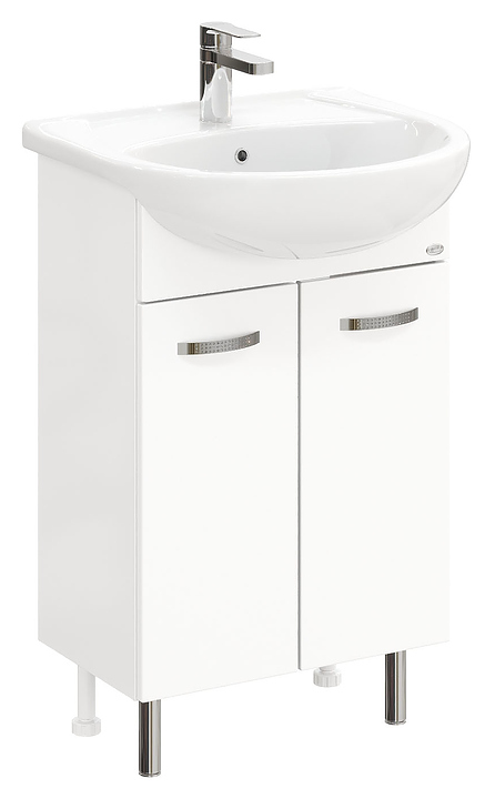 Тумба под раковину Onika КОРАЛЛ 55.10 дополнит интерьер ванной комнаты. Модель оснащена 2 распашными дверьми и ножками, защищающими конструкцию в случае намокания пола. Корпус выполнен из ЛДСП, фасад - из МДФ в пленке, устойчивой к механическим воздействиям, перепадам температур и высокой влажности. Тумба используется вместе с раковиной Cersanit ERICA 55. В комплект поставки входят 2 ручки и ножки. Дополнительные характеристики: