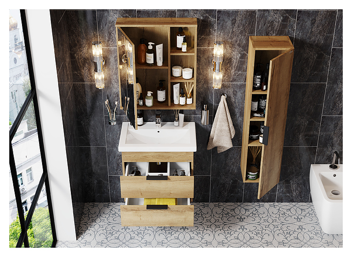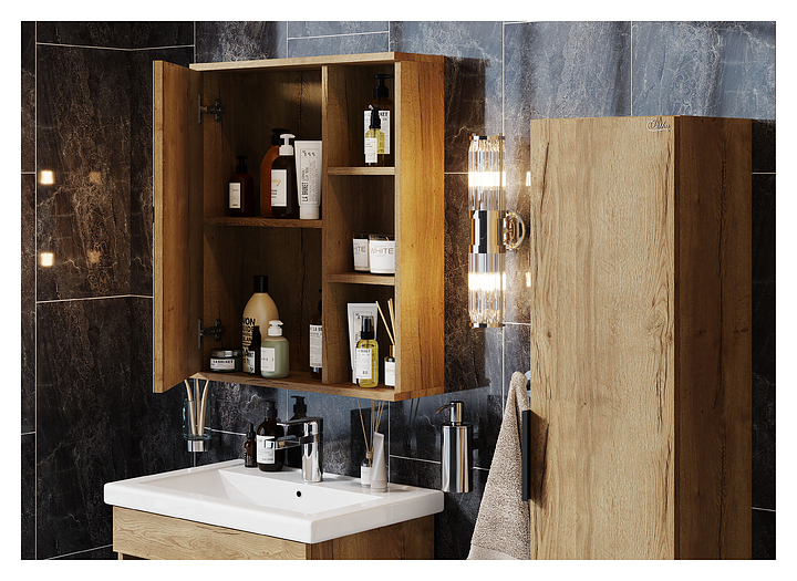 Зеркальный шкаф Onika ЛЕГРАН 70.00 от российского бренда дополнит интерьер ванной комнаты. Благодаря подвесной конструкции модель не занимает много места, что позволяет экономить пространство, а также облегчает уборку. Изделие оснащенораспашной дверью, полочкой за дверцей и открытыми полочками в боковой части. Изделие выполнено из ЛДСП, устойчивой к механическим воздействиям, перепадам температур и высокой влажности. В комплект поставки входят подвесы для крепления. Особенности:
