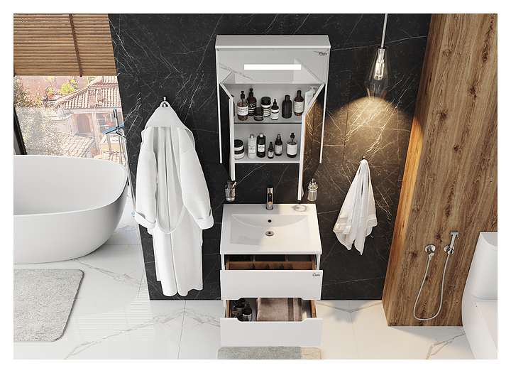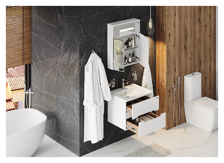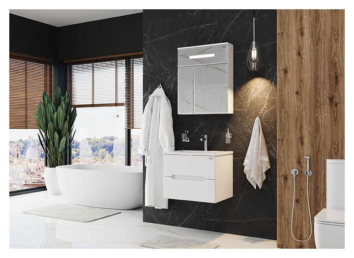 Зеркальный шкаф Onika СИГМА 60.01 от российского бренда дополнит интерьер ванной комнаты. Благодаря подвесной конструкции модель не занимает много места, что позволяет экономить пространство, а также облегчает уборку. Изделие оснащено люминисцентной подсветкой, 2 распашными дверцами с плавным закрыванием и полкой. Корпус выполнен из ЛДСП, устойчивой к механическим воздействиям, перепадам температур и высокой влажности. В комплект поставки входят подвесы для крепления. Дополнительные характеристики: