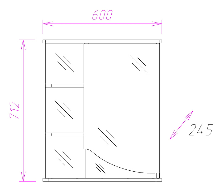 Шкаф зеркальный Onika ВИОЛА 60.01 правый