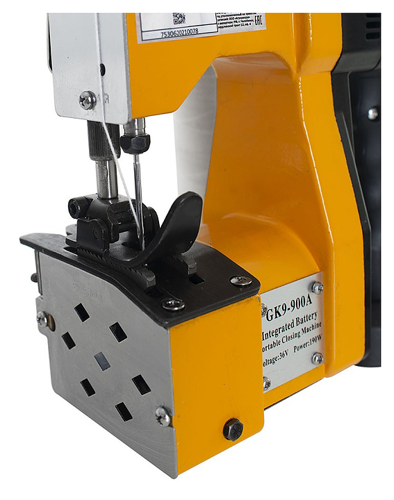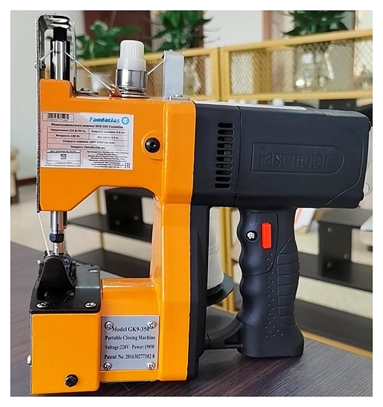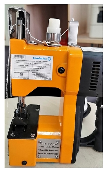 Мешкозашивочная машина Foodatlas GK9-350 используется на предприятиях общественного питания и торговли для прошивания полипропиленовых, полиэтиленовых, джутовых, тканевых и бумажных мешков. Модель оснащена системой обрезки нити, эргономичной рукоятью с удобным расположением кнопки запуска, имеет дополнительные крепления для подвеса, при помощи которых машинку можно подвесить. Также модель оборудована внешним переносным элементом питания (аккумулятором), который соединен с основным корпусом при помощи гибкого кабеля, аккумулятор крепится к поясному ремню оператора, что снижает нагрузку на его руку. Копрус выполнен из стали и покрыт порошковой краской. В комплект поставки входят выносной аккумулятор и расширенный комплект запасных частей (набор сменных игл, ремни привода, маслёнка, ключи-шестигранники) Особенности: