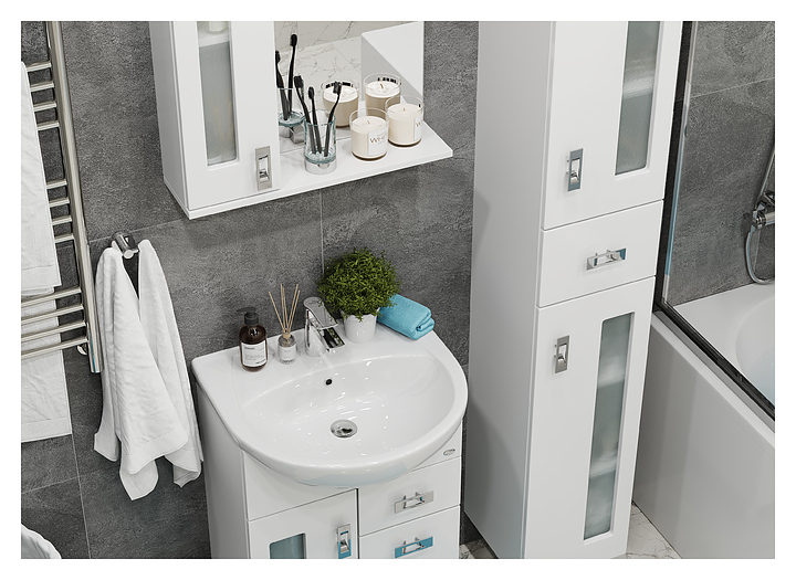 Зеркало Onika КРИСТАЛЛ 58.01 от российского бренда дополнит интерьер ванной комнаты. Благодаря подвесной конструкции модель не занимает много места, что позволяет экономить пространство, а также облегчает уборку. Изделие оснащено шкафчиком с распашной дверцей, открытой полкой в нижней части, LED-светильником, механическим выключателем и встроенной розеткой. Корпус выполнен из ЛДСП, фасад - из МДФ в пленке, устойчивой к механическим воздействиям, перепадам температур и высокой влажности. В комплект поставки входят хромированная ручка и подвесы для крепления. Особенности: