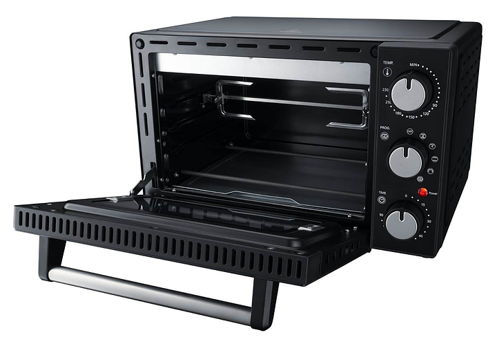 Мини-печь Steba KB M23 предназначена для приготовления и разогрева различных блюд, выпечки кондитерских и хлебобулочных изделий в квартирах, частных домах, кафе и ресторанах. Модель оснащена панелью управления с поворотными переключателями и световым индикатором работы и двойной стеклянной дверью. Теплоизолированный корпус выполнен из стали. В комплект поставки входят решетка для гриля, противень с антипригарным покрытием, поддон для крошек и вертел на 2 курицы. Особенности: