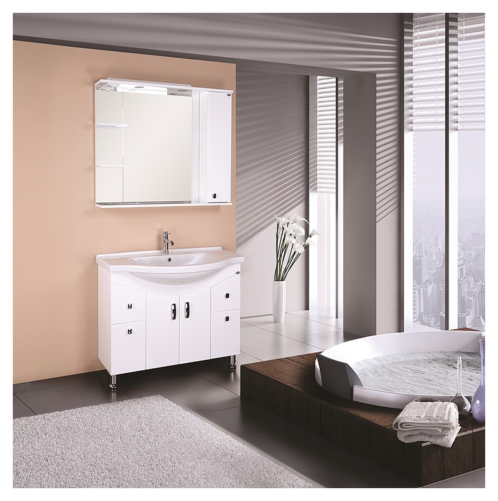 Зеркало Onika ЭЛЬБРУС 90.02 от российского бренда дополнит интерьер ванной комнаты. Благодаря подвесной конструкции модель не занимает много места, что позволяет экономить пространство, а также облегчает уборку. Изделие оснащено шкафчиком с распашной дверцей, 2 полками за дверцей, открытыми полками в боковой и нижней частях, 2 LED-светильниками, механическим выключателем и встроенной розеткой. Корпус выполнен из ЛДСП, фасад - из МДФ в пленке, устойчивой к механическим воздействиям, перепадам температур и высокой влажности. В комплект поставки входят ручка и подвесы для крепления. Особенности: