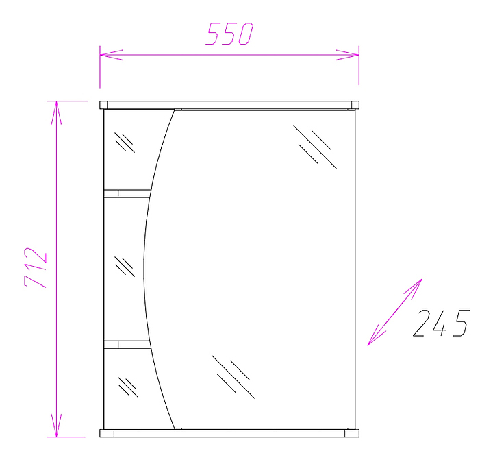 Шкаф зеркальный Onika ЛУНА 55.01 правый