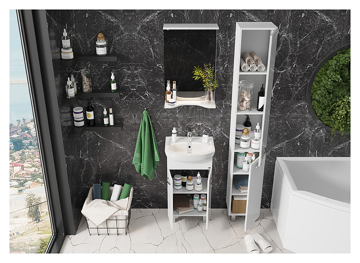 Шкаф-пенал Onika КОРАЛЛ 30.10 дополнит интерьер ванной комнаты. Модель оснащена 2 распашными дверьми с плавным закрыванием, 4 полками за дверьми и ножками, защищающими конструкцию от воздействия влаги в случае намокания пола. Корпус выполнен из ЛДСП, фасад - из МДФ в пленке, устойчивой к механическим воздействиям, перепадам температур и высокой влажности. В комплект поставки входят 2 ручки, 2 декоративные и 2 пластиковые ножки. Дополнительные характеристики: