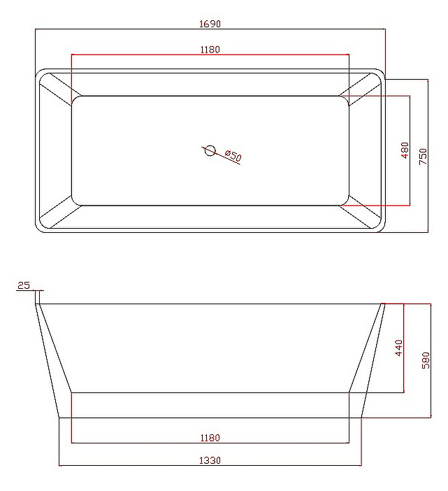 • Диаметр слива: 50 мм