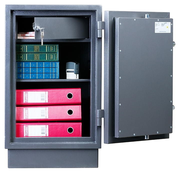 Взломостойкий сейф Valberg КВАРЦИТ 65МТ предназначен для безопасного хранения документации, наличных денежных средств, ювелирных изделий и других ценностей в гостиницах, отелях, офисах, квартирах и загородных домах. Модель оснащена распашной двухкомпонентной дверью на внешних петлях и внутренним трейзером с самостоятельной запираемой на ключ дверцей. Корпус выполнен из высококачественной стали с износостойким порошковым покрытием структурированный графит (RAL 7024), горизонтальная вставка на двери – из нержавеющей стали, внутренняя заливка двери и стенок – тяжелый бетон. В комплект поставки входят ключи. Особенности: