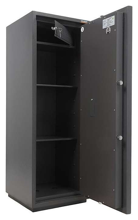 Взломостойкий сейф Valberg КВАРЦИТ 120Т EL предназначен для безопасного хранения документации, наличных денежных средств, ювелирных изделий и других ценностей в гостиницах, отелях, офисах, квартирах и загородных домах. Модель оснащена распашной двухкомпонентной дверью на внешних петлях и внутренним трейзером с самостоятельной запираемой на ключ дверцей. Корпус выполнен из высококачественной стали с износостойким порошковым покрытием структурированный графит (RAL 7024), внутренняя заливка двери и стенок – тяжелый бетон. В комплект поставки входят ключи. Особенности: