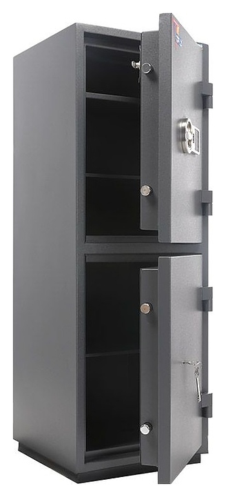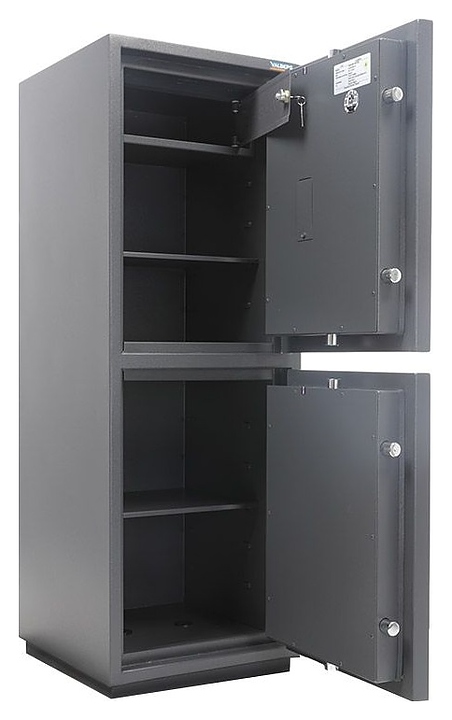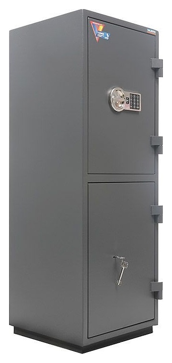 Взломостойкий сейф Valberg КВАРЦИТ 120Т/2 EL предназначен для безопасного хранения документации, наличных денежных средств, ювелирных изделий и других ценностей в гостиницах, отелях, офисах, квартирах и загородных домах. Модель оснащена 2 изолированными секциями с распашными двухкомпонентными дверьми на внешних петлях и внутренним трейзером с самостоятельной запираемой на ключ дверцей. Корпус выполнен из высококачественной стали с износостойким порошковым покрытием структурированный графит (RAL 7024), внутренняя заливка двери и стенок – тяжелый бетон. В комплект поставки входят ключи. Особенности: