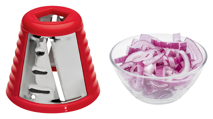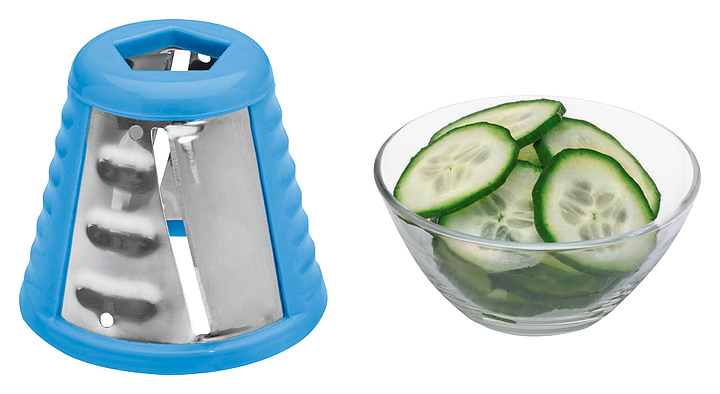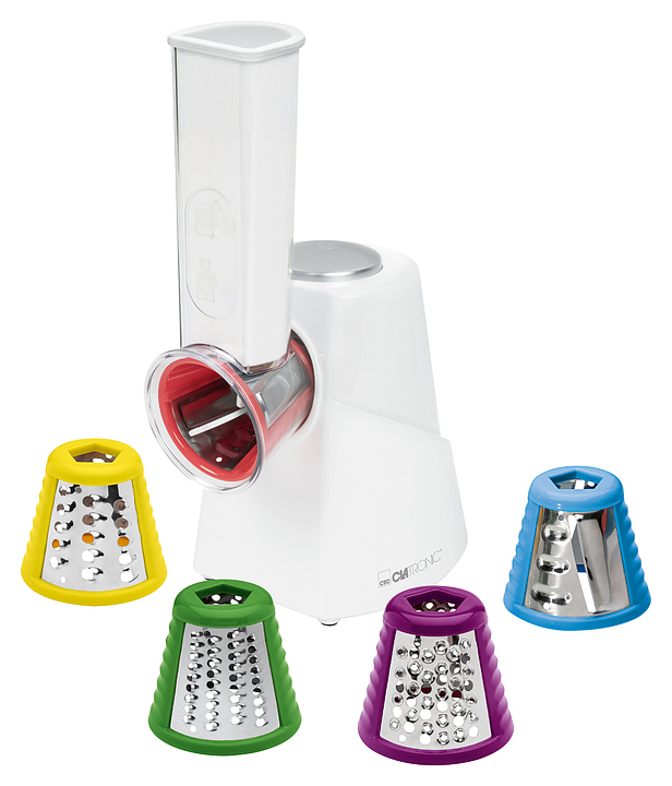 Овощерезка Clatronic ME 3604 предназначена для нарезки и измельчения различных продуктов в частных домах и квартирах. Модель оснащена 5 сменными барабанными вставками с лезвиями из нержавеющей стали. Комплектация: