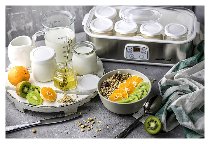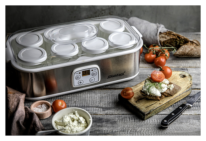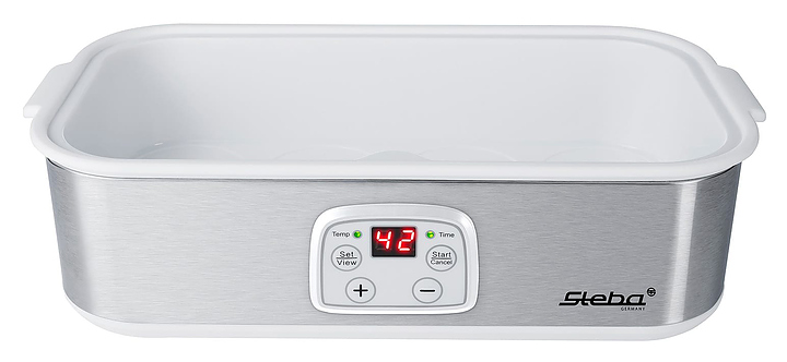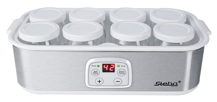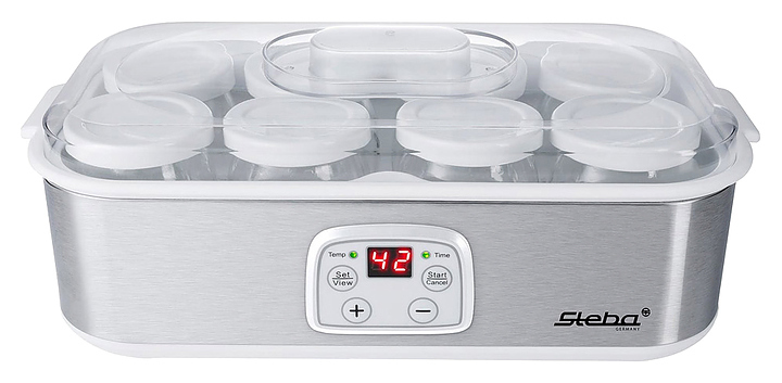 Йогуртница Steba JM 3 предназначена для приготовления йогуртов в частных домах и квартирах. Модель оснащена электронным управлением с ЖК-дисплеем и прозрачной крышкой. Корпус выполнен из пластика и нержавеющей стали. В комплект поставки входят 8 стеклянных баночек для йогурта с крышками, емкостью 180 мл. Особенности: