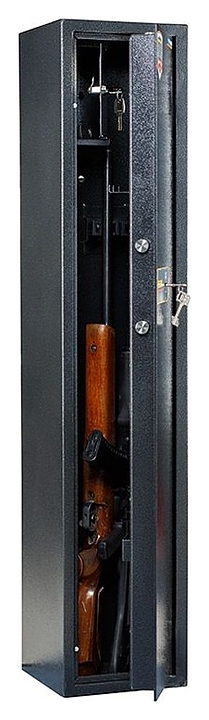 Оружейный сейф Valberg АРСЕНАЛ 130Т предназначен для безопасного хранения длинноствольного огнестрельного оружия, патронов и аксессуаров в гостиницах, отелях, частных домах и квартирах. Модель оснащена распашной двухкомпонентной дверью и внутренним патронным трейзером с самостоятельной запираемой на ключ дверцей. Корпус выполнен из высококачественной стали с износостойким порошковым покрытием цвета серебристый антик. В комплект поставки входят ключи. Особенности: