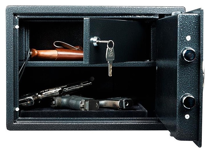 Оружейный сейф Valberg АРСЕНАЛ 25T EL предназначен для безопасного хранения короткоствольного огнестрельного оружия, патронов и аксессуаров в гостиницах, отелях, частных домах и квартирах. Модель оснащена распашной двухкомпонентной дверью и внутренним патронным трейзером с самостоятельной запираемой на ключ дверцей. Корпус выполнен из высококачественной стали с износостойким порошковым покрытием цвета серебристый антик. В комплект поставки входят ключи. Особенности: