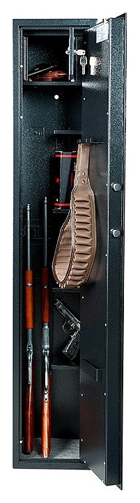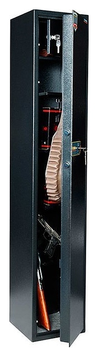 Оружейный сейф Valberg АРСЕНАЛ 161Т предназначен для безопасного хранения длинноствольного огнестрельного оружия, патронов и аксессуаров в гостиницах, отелях, частных домах и квартирах. Модель оснащена распашной двухкомпонентной дверью и внутренним патронным трейзером с самостоятельной запираемой на ключ дверцей. Корпус выполнен из высококачественной стали с износостойким порошковым покрытием цвета серебристый антик. В комплект поставки входят ключи. Особенности: