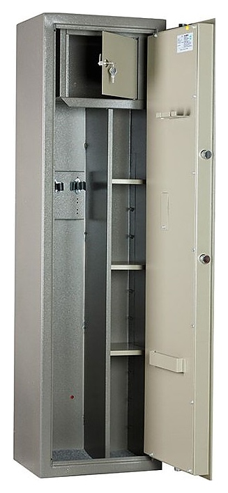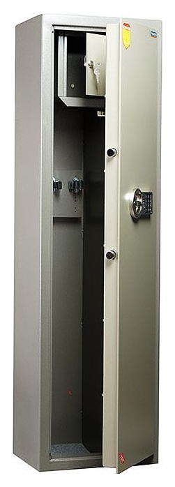 Оружейный сейф Valberg ЗАСЛОН EL предназначен для безопасного хранения длинноствольного огнестрельного оружия, патронов и аксессуаров в гостиницах, отелях, частных домах и квартирах. Модель оснащена распашной двухкомпонентной дверью и внутренним патронным трейзером с самостоятельной запираемой на ключ дверцей. Корпус выполнен из высококачественной стали с износостойким порошковым покрытием в светлых тонах коричневого цвета с эффектом молотковой эмали. В комплект поставки входят ключи. Особенности: