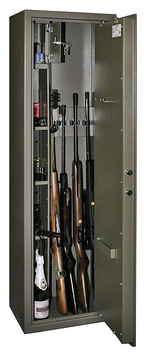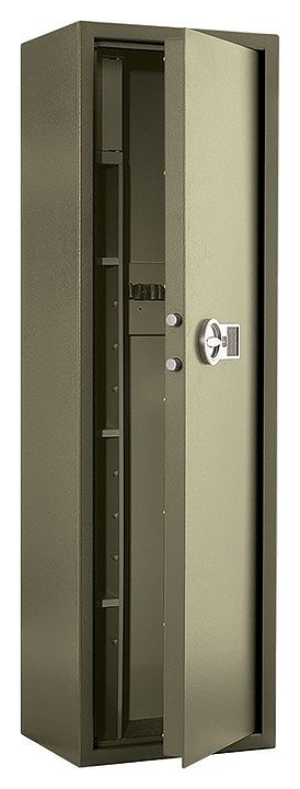 Оружейный сейф Valberg САФАРИ EL предназначен для безопасного хранения длинноствольного огнестрельного оружия, патронов и аксессуаров в гостиницах, отелях, частных домах и квартирах. Модель оснащена распашной двухкомпонентной дверью и внутренним патронным трейзером с самостоятельной запираемой на ключ дверцей. Корпус выполнен из высококачественной стали с износостойким порошковым покрытием в светлых тонах коричневого и зеленого цветов с эффектом молотковой эмали. В комплект поставки входят ключи. Особенности: