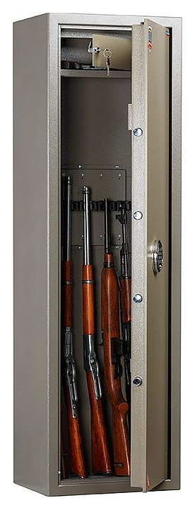 Оружейный сейф Valberg ИРБИС 5 EL предназначен для безопасного хранения длинноствольного огнестрельного оружия, патронов и аксессуаров в гостиницах, отелях, частных домах и квартирах. Модель оснащена распашной двухкомпонентной дверью и внутренним патронным трейзером с самостоятельной запираемой на ключ дверцей. Корпус выполнен из высококачественной стали с износостойким порошковым покрытием в светлых тонах коричневого цвета с эффектом молотковой эмали. В комплект поставки входят ключи. Особенности: