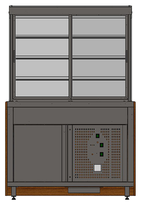 Тепловая витрина Refettorio Capital RH22AS используется в составе линии раздачи Capital на предприятиях общественного питания и торговли для демонстрации и временного хранения готовых горячих блюд и выпечки. Модель оснащена 3 вместительными внутренними полками. Столешница выполнена из кварцевого агломерата, фасад - из ламинированного МДФ. Особенности: