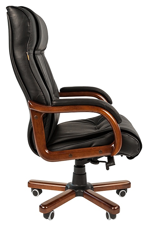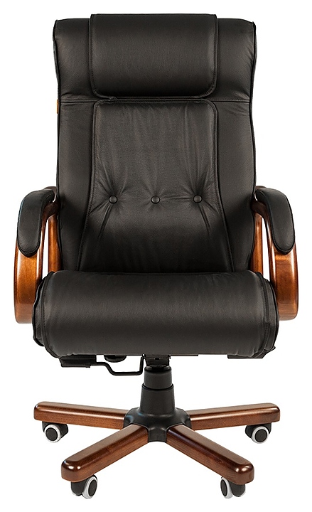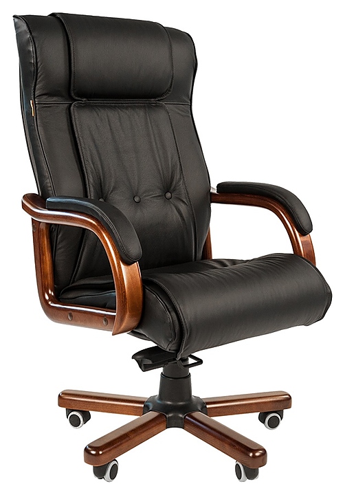 Офисное кресло Chairman 653 предназначено для комфортного размещения руководителя в офисах различных учреждений. Модель оснащена мягкими сиденьем и спинкой с массивным подголовником, изящными подлокотниками, устойчивым основанием с пятилучьем на колесах и рычагами регулировки. Обивка лицевых сторон выполнена из качественной натуральной кожи с декоративными пуговицами на спинке, обивка задних сторон и боковин – из экокожи, пятилучье – из металла с деревянными накладками и пластиковыми элементами, подлокотники – из натурального дерева с лакированным покрытием и мягкими накладками с кожаной обивкой, колеса с полиуретановым покрытием, наполнитель – эластичный пенополиуретан и синтепон. В комплект поставки входит инструкция по сборке. Особенности: