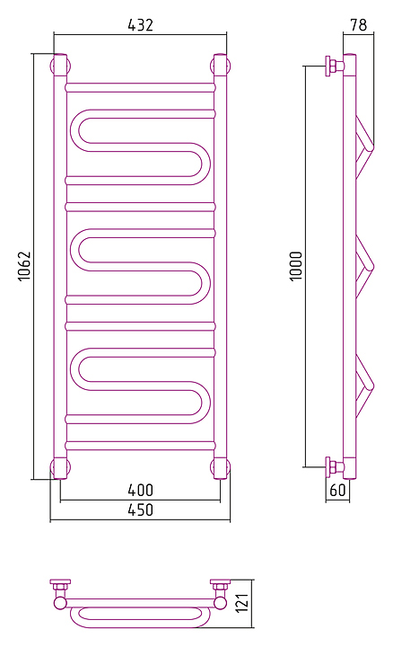 Полотенцесушитель водяной Сунержа Элегия+ 100x40 см темный титан муар