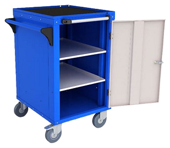 Тумба ДВК WOKER 1M предназначена для хранения инструментов и оснастки на производственных участках, станциях технического обслуживания, в мастерских и гаражах. Модель оснащена распашной дверью с 2 регулируемыми по высоте полками, удобной ручкой с одной стороны тумбы и поворотными колесами. Комплектация: