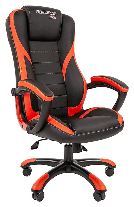 Игровое кресло Chairman GAME 22 предназначено для комфортного размещения компьютерного игрока в игровых клубах, офисах и домашних условиях. Модель оснащена мягкими сиденьем и спинкой с подушкой-подголовником, подлокотниками, устойчивым основанием с пятилучьем на колесах и рычагами регулировки. Обивка выполнена из качественной экокожи с декоративной прострочкой на спинке, пятилучье – из ударопрочного пластика с защитными пластиковыми накладками, колеса с полиуретановым покрытием, подлокотники – из пластика с мягкими накладками с обивкой из экокожи, наполнитель – эластичный пенополиуретан и синтепон. В комплект поставки входит инструкция по сборке. Особенности: