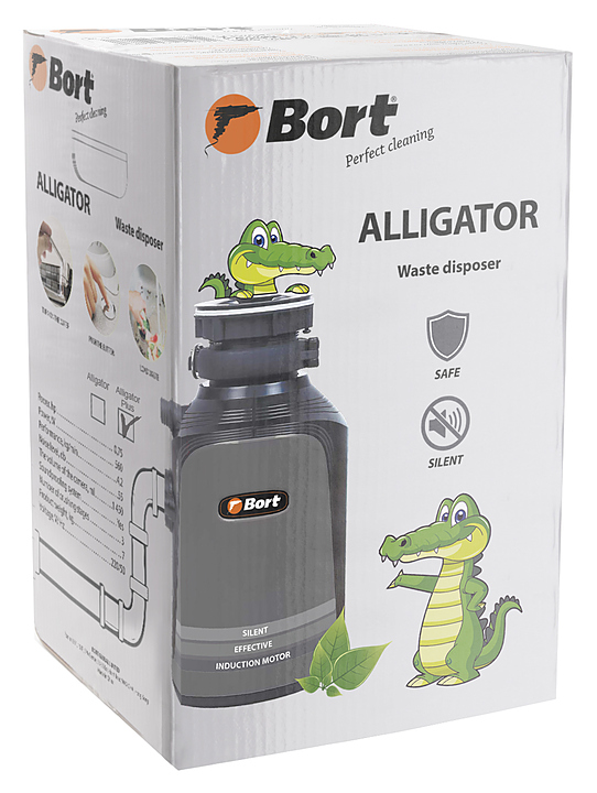 Измельчитель пищевых отходов Bort Alligator Plus предназначен для перерабатывания овощных и фруктовых очистков, рыбных, мясных отходов и остатков готовых блюд в частных домах и квартирах. Устанавливается в сливную систему мойки и подключается к канализации. Модель оснащена индукционным двигателем и пневмовыключателем. Камера и измельчающие элементы выполнены из нержавеющей стали. В комплект поставки входят монтажный узел, проталкиватель и сливная труба. Особенности:
