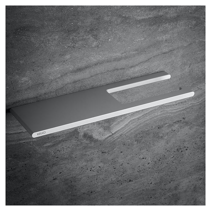 Держатель для туалетной бумаги Keuco Edition 400 11573170000 предназначен для дозированной подачи рулонной туалетной бумаги в санитарно-гигиенических комнатах. Аксессуары этой коллекции идеально дополнят дизайн любой ванной комнаты. Модель оснащена полкой для телефона, имеет скрытые крепления и монтируется на стену. Полка изготовлена из алюминия. Особенности: