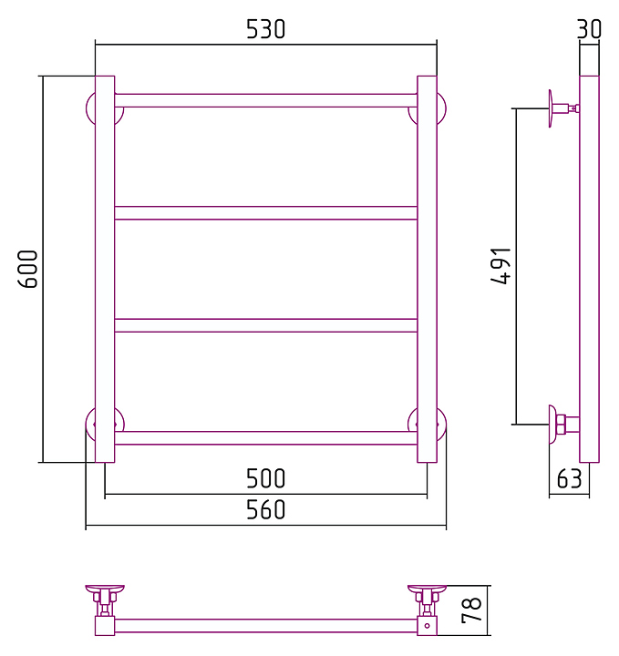Полотенцесушитель водяной Стилье Версия-КН 60x50 см без покрытия