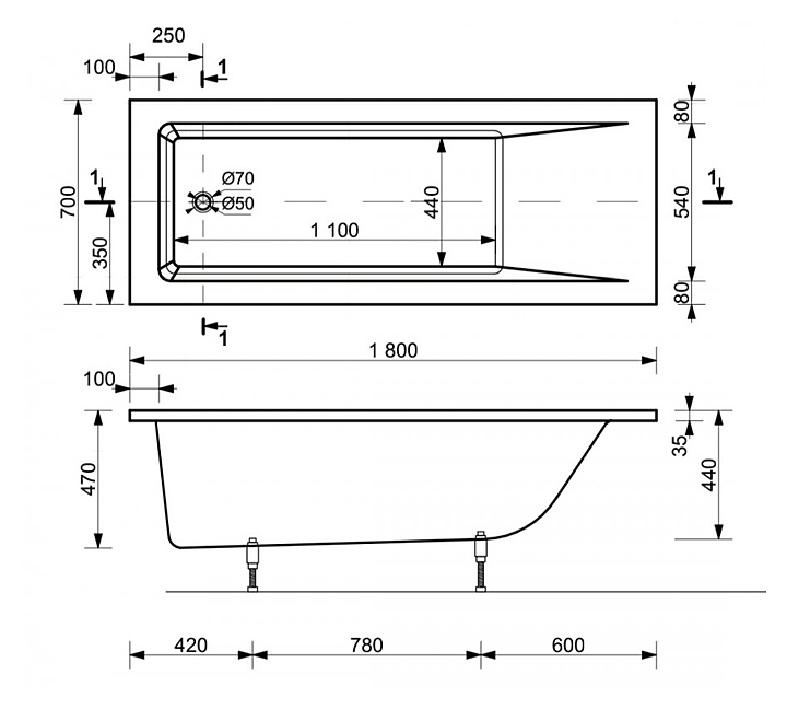 Ванна ЭСТЕТ Дельта 180А ФР-00010113 180х70 мм