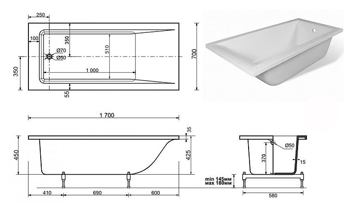 Ванна ЭСТЕТ Дельта 170А ФР-00000651 170х70 мм