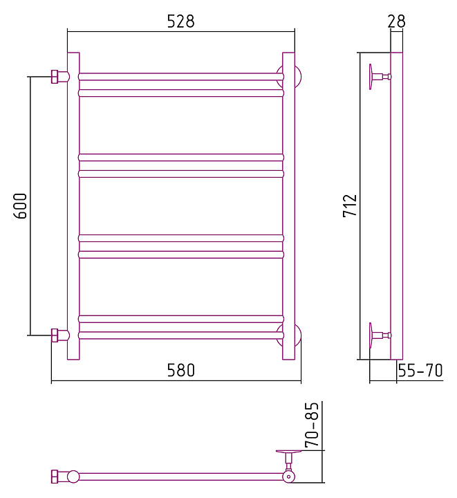 Полотенцесушитель водяной Стилье Версия-Б1 60х50 см без покрытия