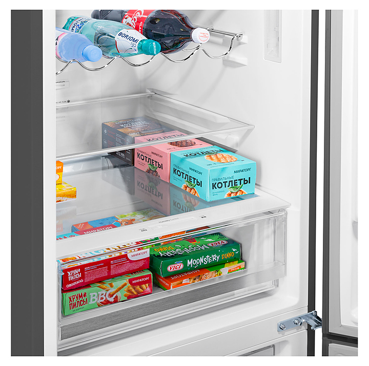 Холодильник Maunfeld MFF185NFB предназначен для охлаждения и кратковременного хранения скоропортящихся продуктов, напитков и лекарств в частных домах, квартирах, отелях и офисах. Модель оснащена сенсорной панелью управления на двери, внутренней светодиодной подсветкой холодильной камеры, регулируемыми по высоте ножками и утопленными ручками. Корпус выполнен из металла, фасад - из закаленного стекла, внутренняя часть - из антибактериального пластика. Особенности: